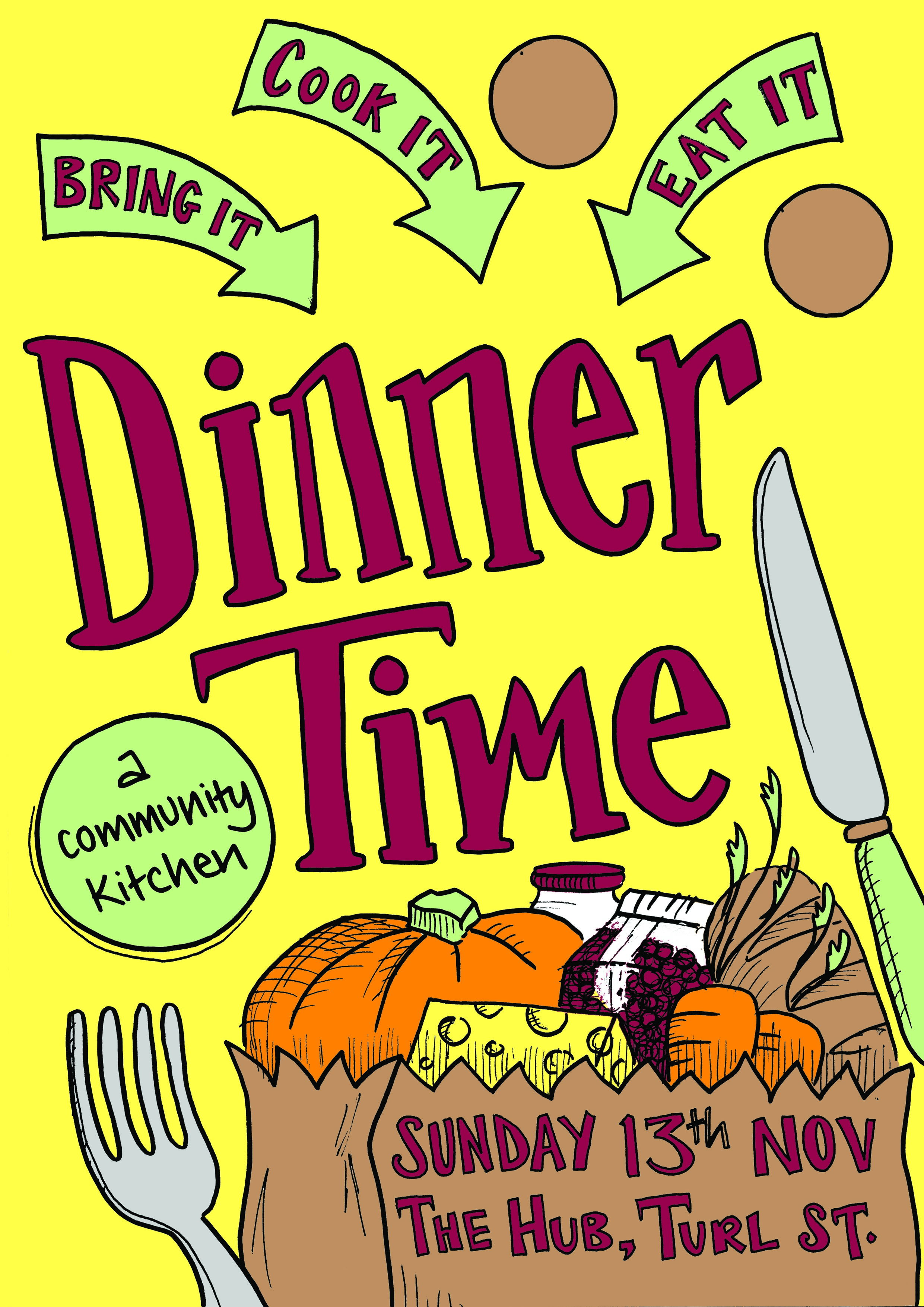 DinnerTime is a collaboration between OxGrow, Food Justice and the Community Action Group Project, with kind support from the Oxford Food Bank. It will be held at the Oxford Hub‘s buzzing new social action centre, just above the Turl Street Kitchen.