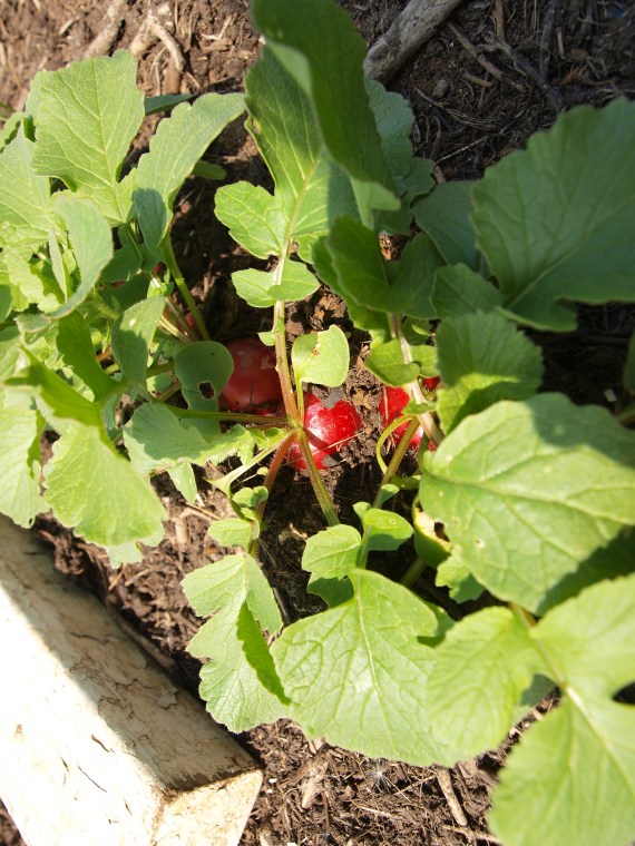 Our new long-handled spade – long so you have to bend less – proved pretty nifty in the last throes of preparing our enormous triangular sweetcorn bed, and the right-angled fork will no doubt come in handy later in the season when we’ve got more weeds…