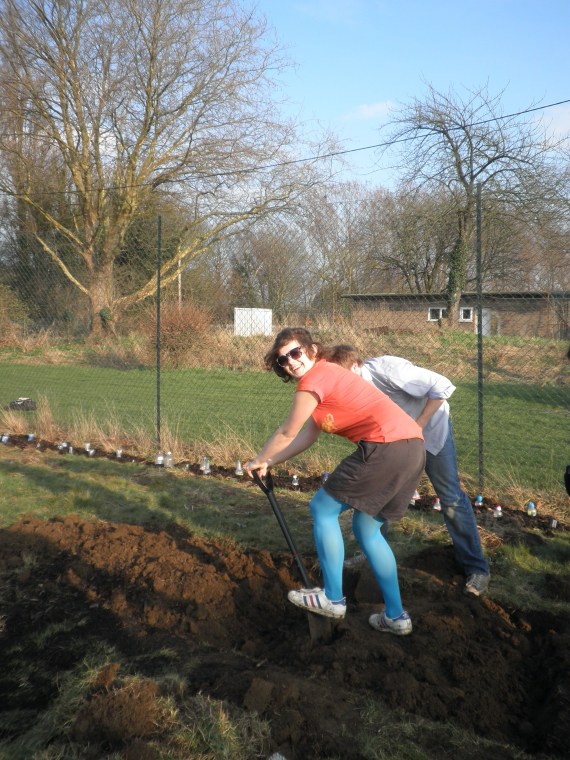 We had a beautiful afternoon sun to work under on Sunday which put us all in good spirits. The first thing we noticed was that the tulips had shot up since last week. A large row along the outside of the gate are in leaf now, though no buds to be seen as of yet.